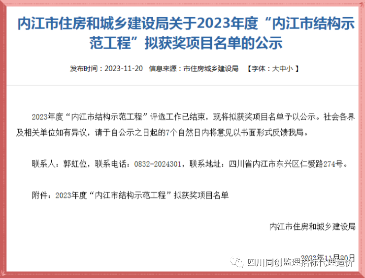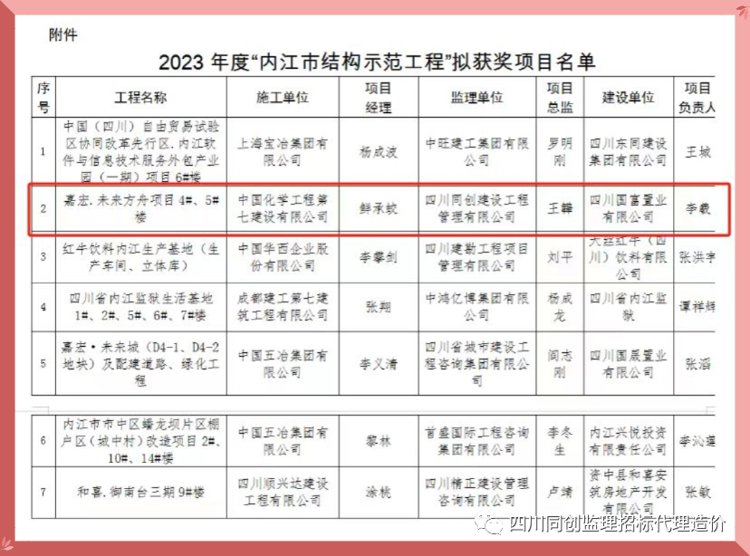 近日,內(nèi)江市住房和城鄉(xiāng)建設(shè)局公布了2023年度內(nèi)江市“結(jié)構(gòu)示范工程”獲獎工程名單,四川同創(chuàng)建設(shè)工程管理有限公司監(jiān)理的“嘉宏.未來方舟項目4#、5#樓”項目榜上有名,這一榮譽不僅是對項目團(tuán)隊辛勤付出的肯定,也是對四川同創(chuàng)建管監(jiān)理工作的高度認(rèn)可。